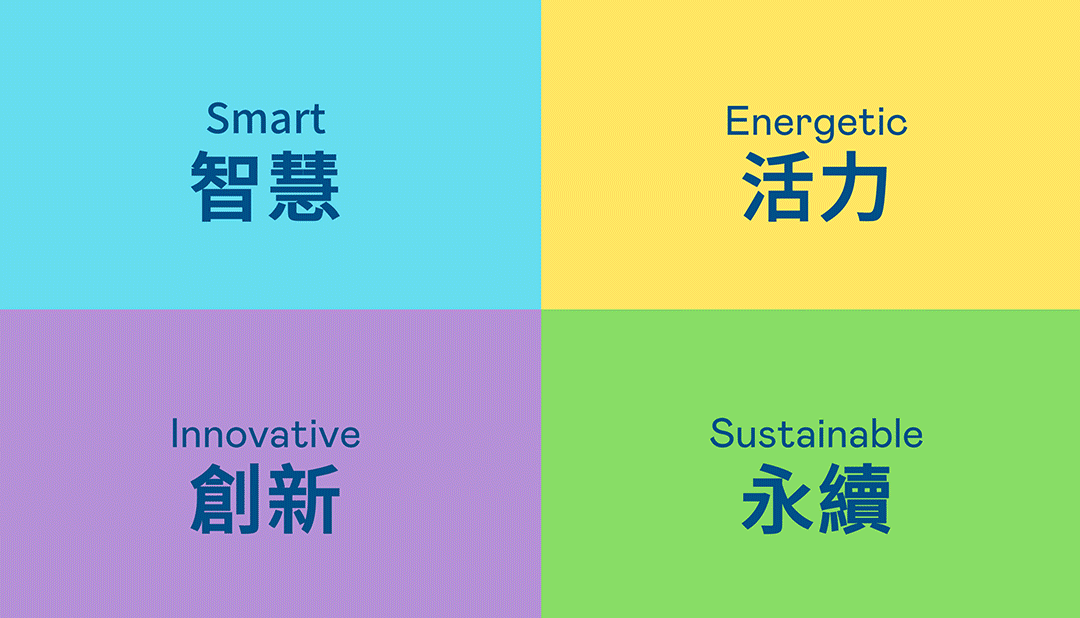从稳重、信赖的PA视讯蓝开创新色彩,注入象征智慧蓝、活力黄、创新紫、永续绿的品牌色及动态多变的几何图形,呼应不设限的「Possibilities」精神,代表多元的专业技术及领域,在碰撞中相互触动、融合、延伸,持续激荡出更多新的可能性。